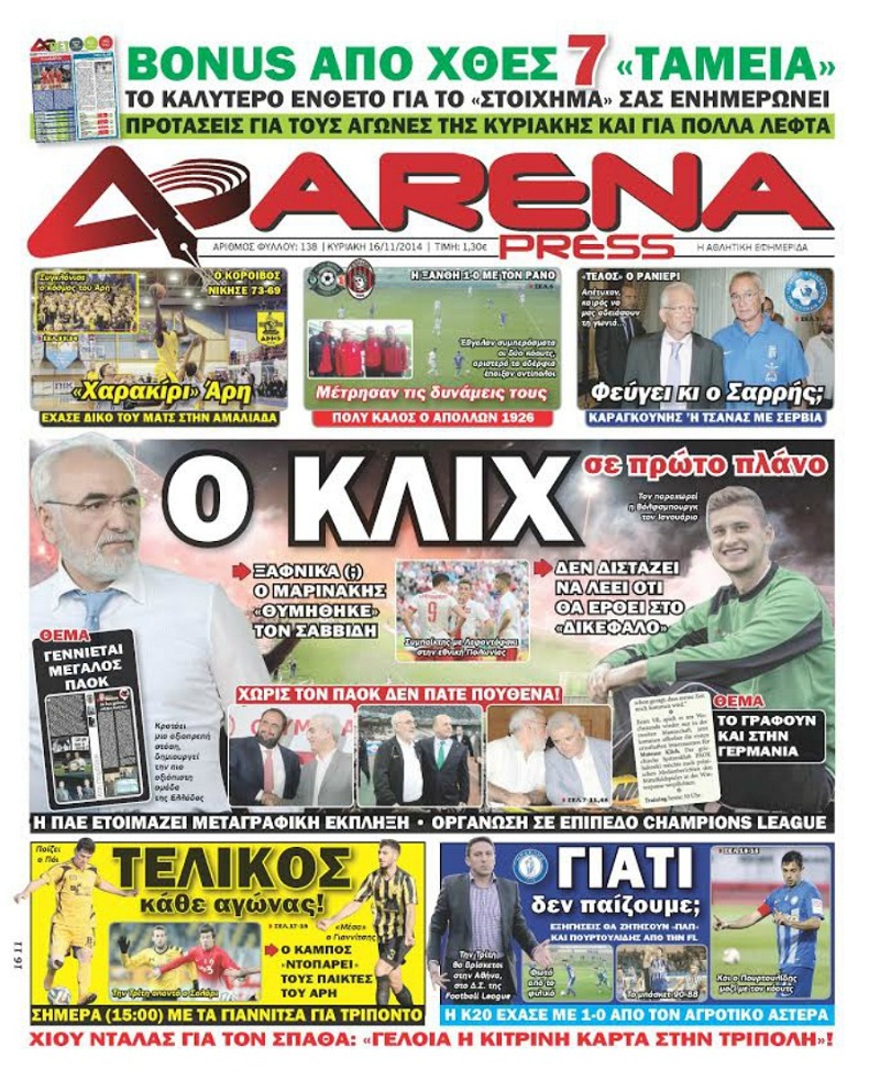 ΠΡΩΤΟΣΕΛΙΔΑ ΑΘΛΗΤΙΚΩΝ ΕΦΗΜΕΡΙΔΩΝ 16/11/2014