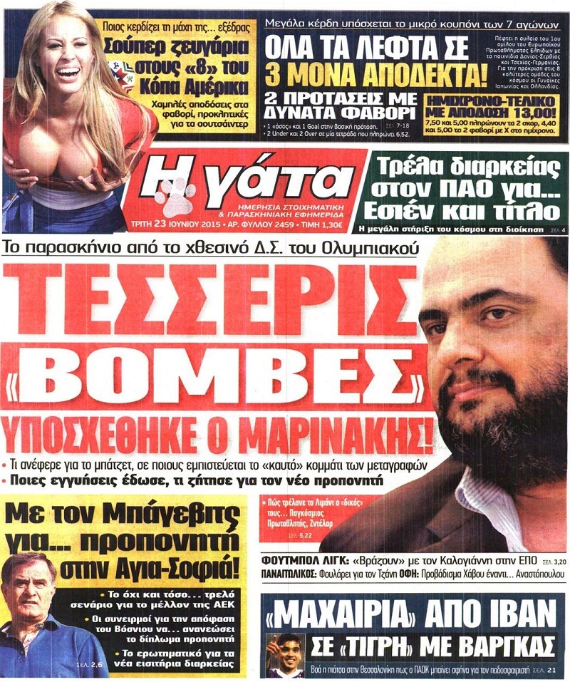 ΠΡΩΤΟΣΕΛΙΔΑ ΑΘΛΗΤΙΚΩΝ ΕΦΗΜΕΡΙΔΩΝ 23/6/2015