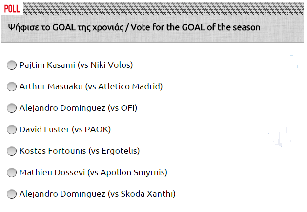 Πατώντας ΕΔΩ μπορείτε να ψηφίσετε το καλύτερο φετινό goal των «ερυθρολεύκων», κατά την δική σας άποψη!
