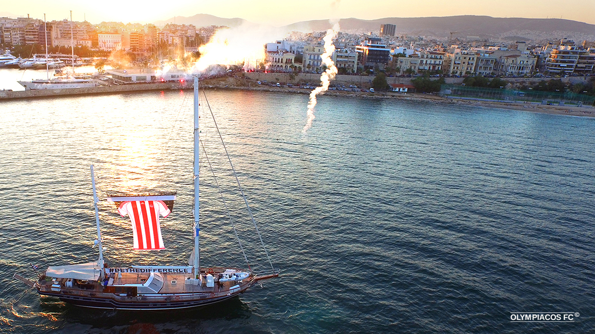 Δείτε το video του Olympiacos TV από… ψηλά, με την πορεία της νέας φανέλας του Ολυμπιακού στην θάλασσα του Πειραιά: